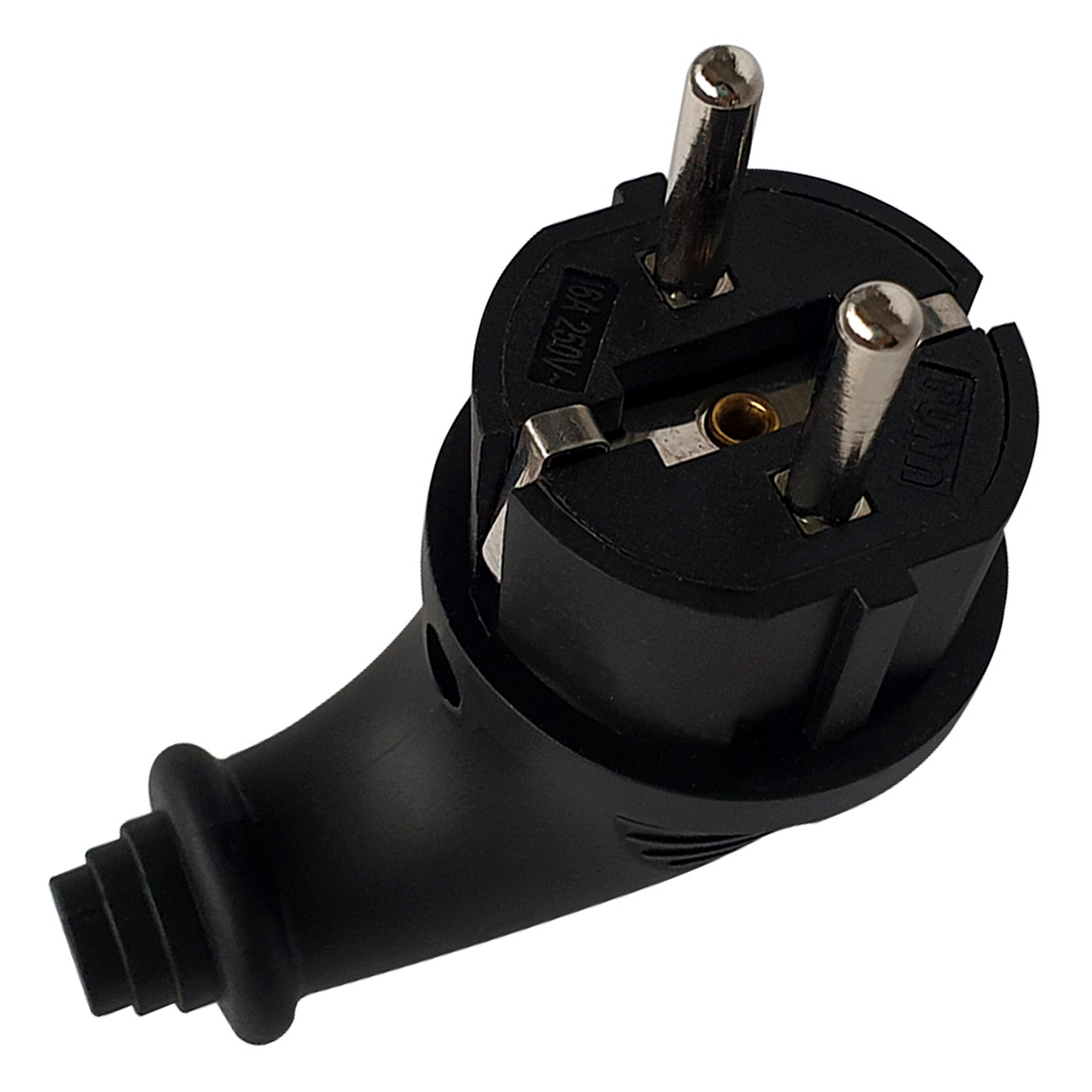 Вилка угловая черная 16 А, каучук (2036)