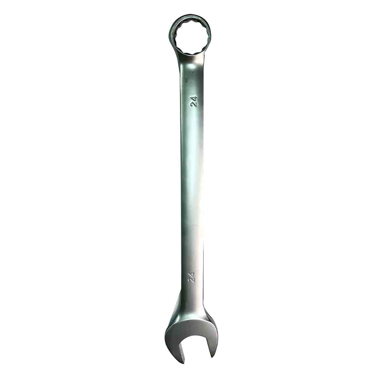 Ключ комбинированный 24 мм - это универсальный инструмент прямой формы с одной стороны имеет рожковую головку, наклоненную на 15 градусов, с другой стороны накидкой ключ.