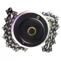Шпуля для триммера (головка) с цепью гайка М10*1,25 левая. Подходит для скашивания мелких деревьев, кустарников камыша, амброзии. За счет длинного носа используется на неровных грунтах. Острая цепь имеет высокую твердость и прочность. Головка на триммер с цепями накручивается прямо на болт редуктора без каких либо переходников и защищена от стирания.