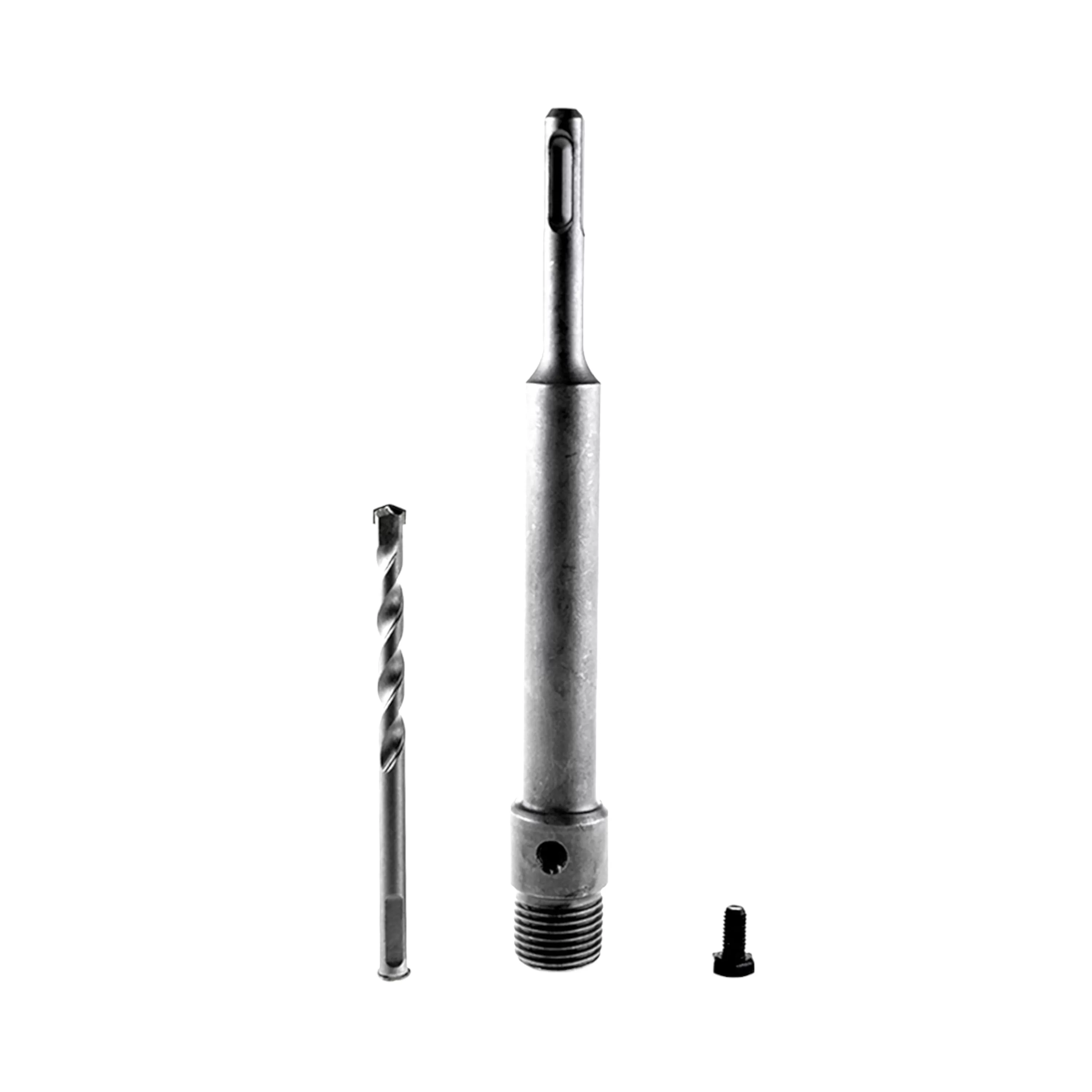 Хвостовик из прочной инструментальной стали предназначен для перфораторов, оснащенных патроном типа SDS-Plus. Центрирующее сверло позволяет увеличить глубину сверления при работе с буровыми коронками различных типов. В конструкции переходника SDS-Plus предусмотрено сверло для центрирования диаметром 8 мм.