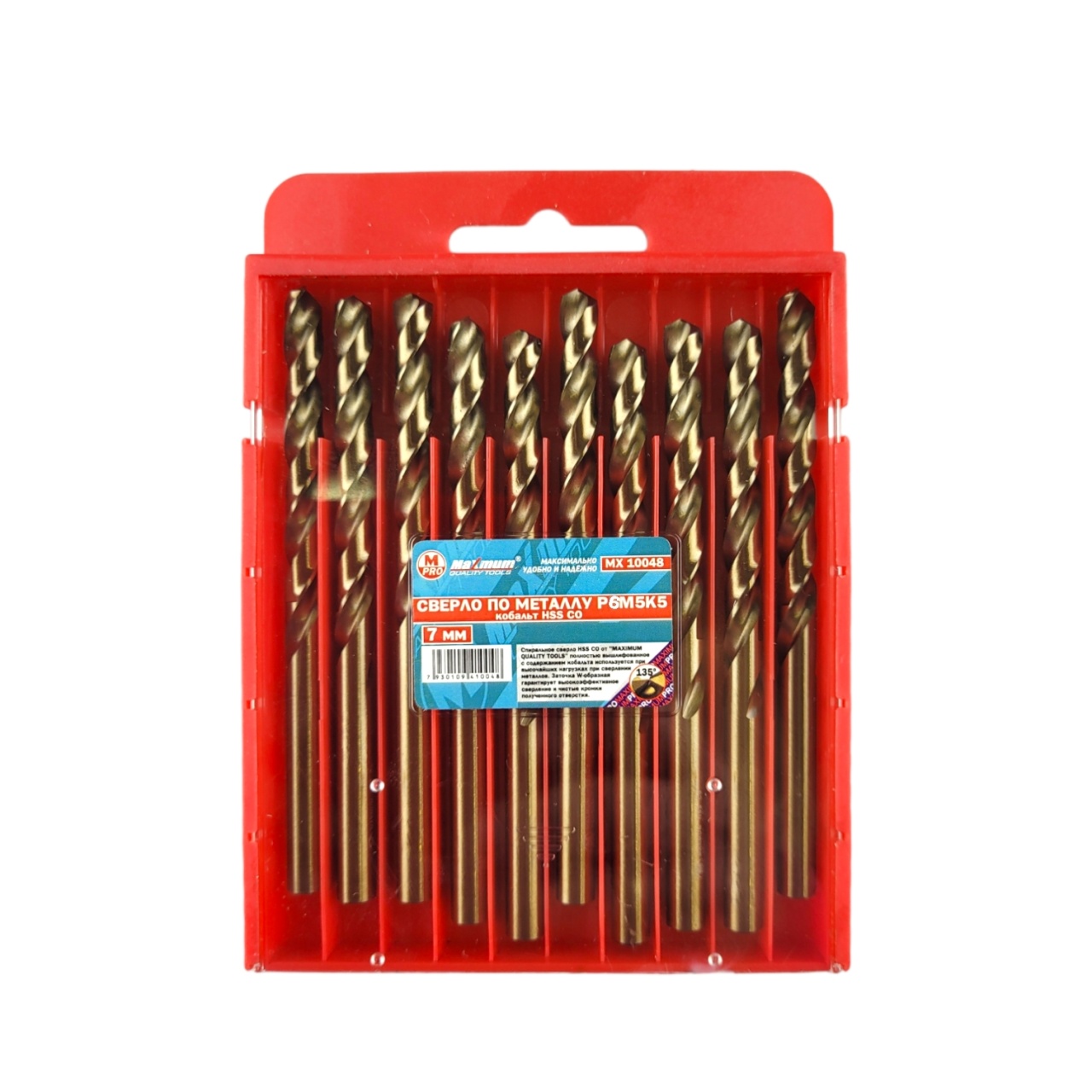 Кобальтовые сверла по металлу P6M5K5 7 мм от "MAXIMUM QUALITY TOOLS" из профессиональной серии изготовлено из быстрорежущей стали (High Sрeed Steel) с добавлением кобальта, благодаря чему обладает высокой теплостойкостью, что определяет высокий ресурс режущих кромок сверла. Общая длина: 100 мм. Рабочая часть 60 мм. Направление вращения правостороннее.